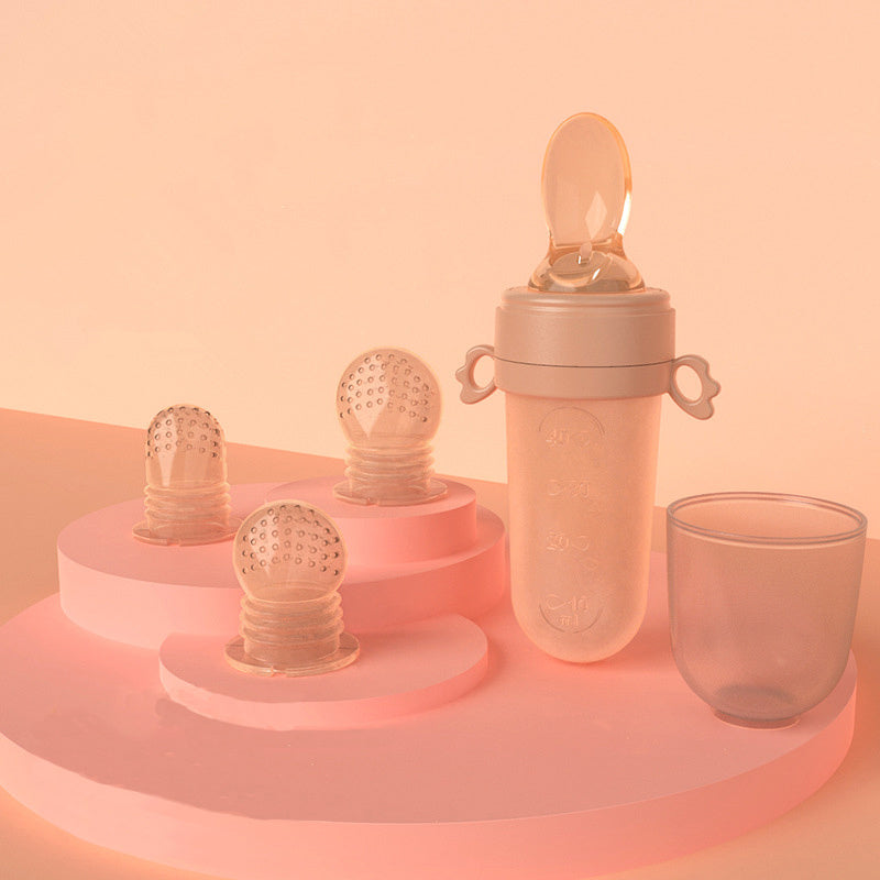 Baby Feeding Spoon with Silicone Bottle – Fruit & Rice Cereal Squeezer